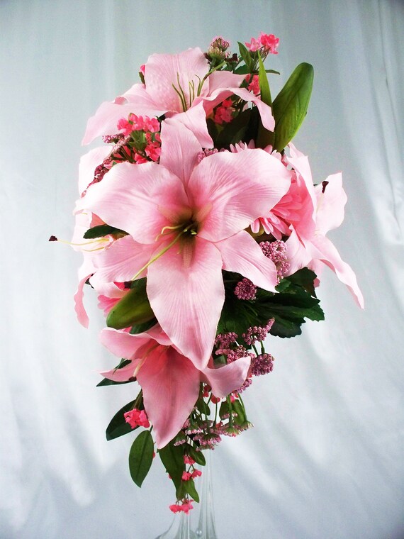 Pink Wedding Bouquet Cascade Bridal Bouquet Pink Artificial Etsy