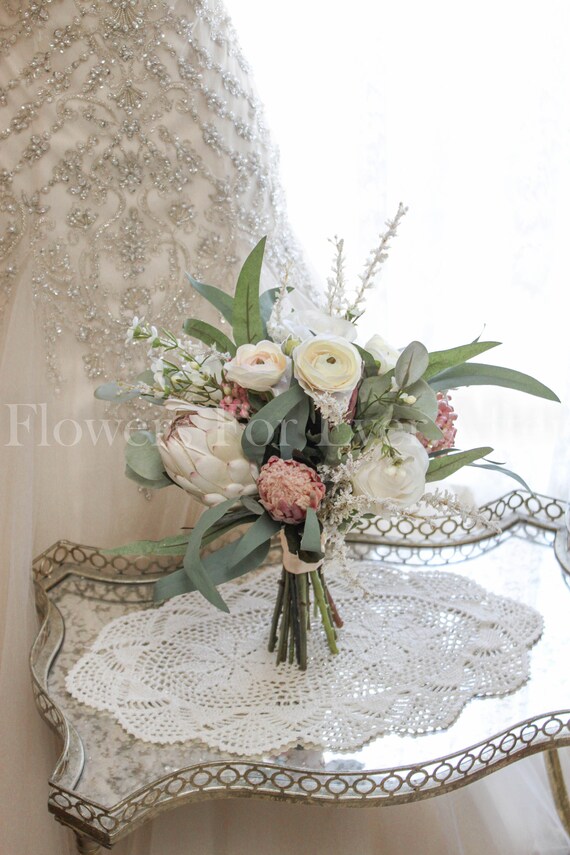 Isobel I Bridesmaid Dusty Pink Protea Ivory Silk Wedding Etsy