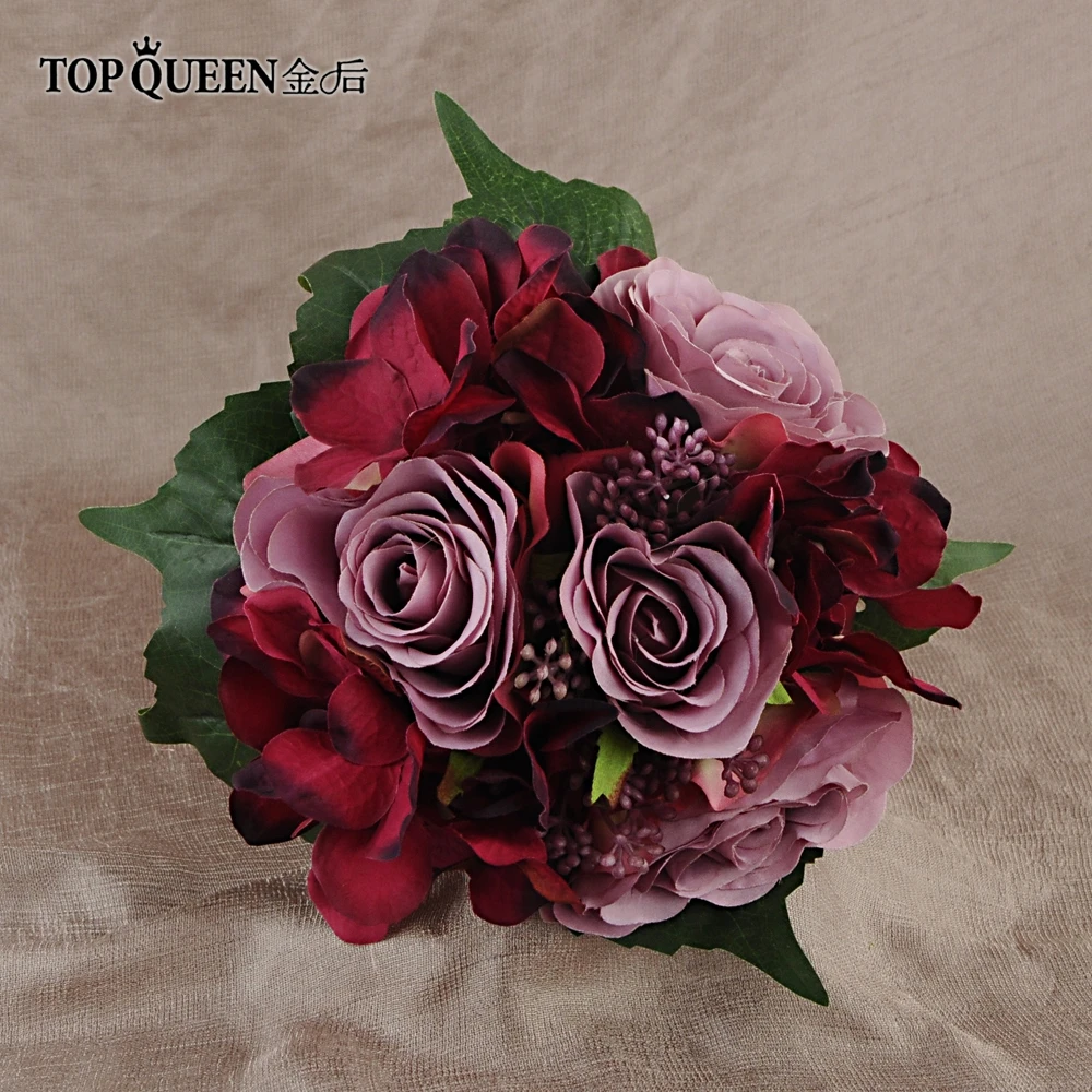 Topqueen F20 Wedding Bouquet Peony Bouquet Burgundy Flowers