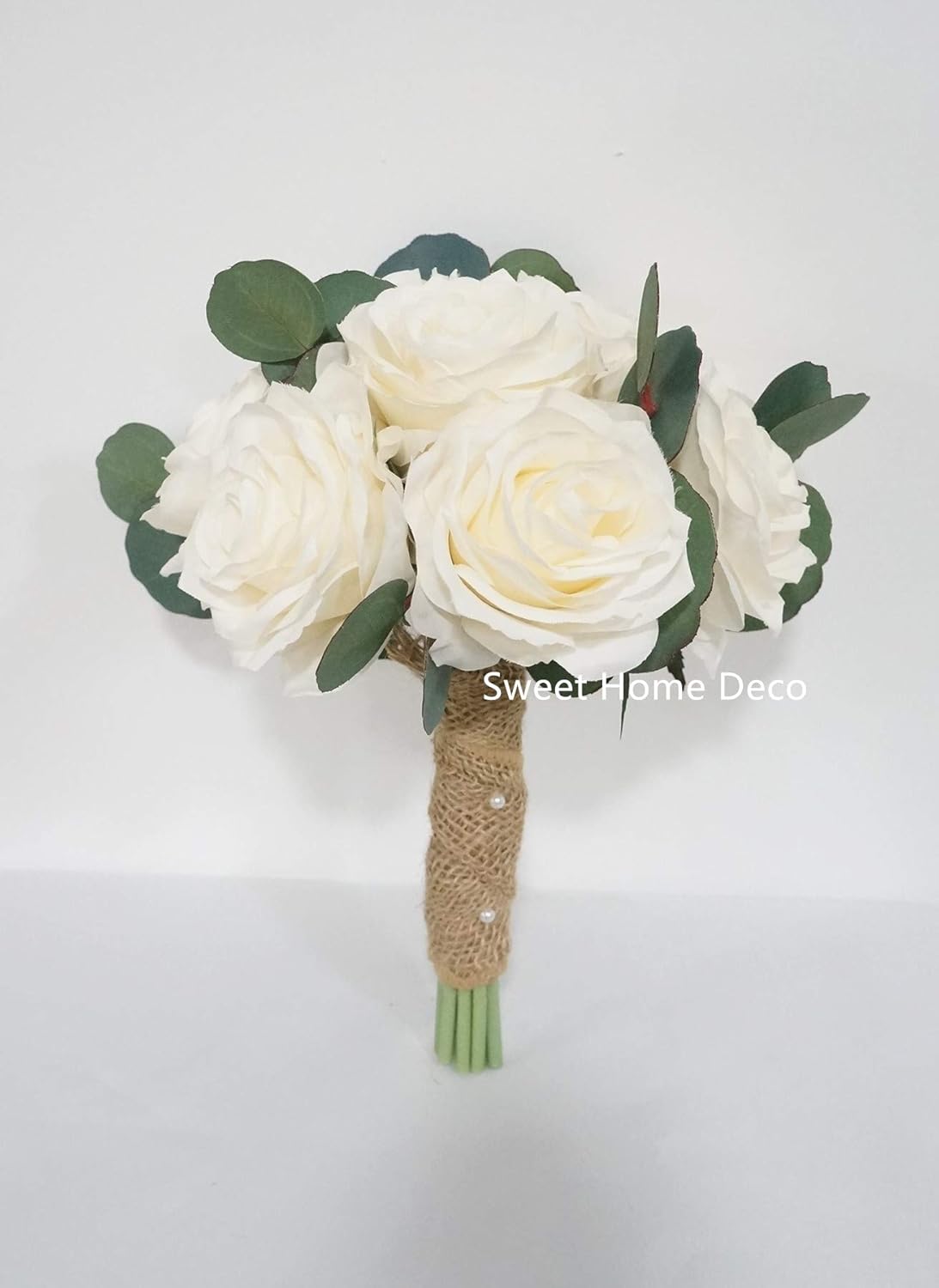 Amazon Com Sweet Home Deco Silk Rose Real Touch Eucalyptus