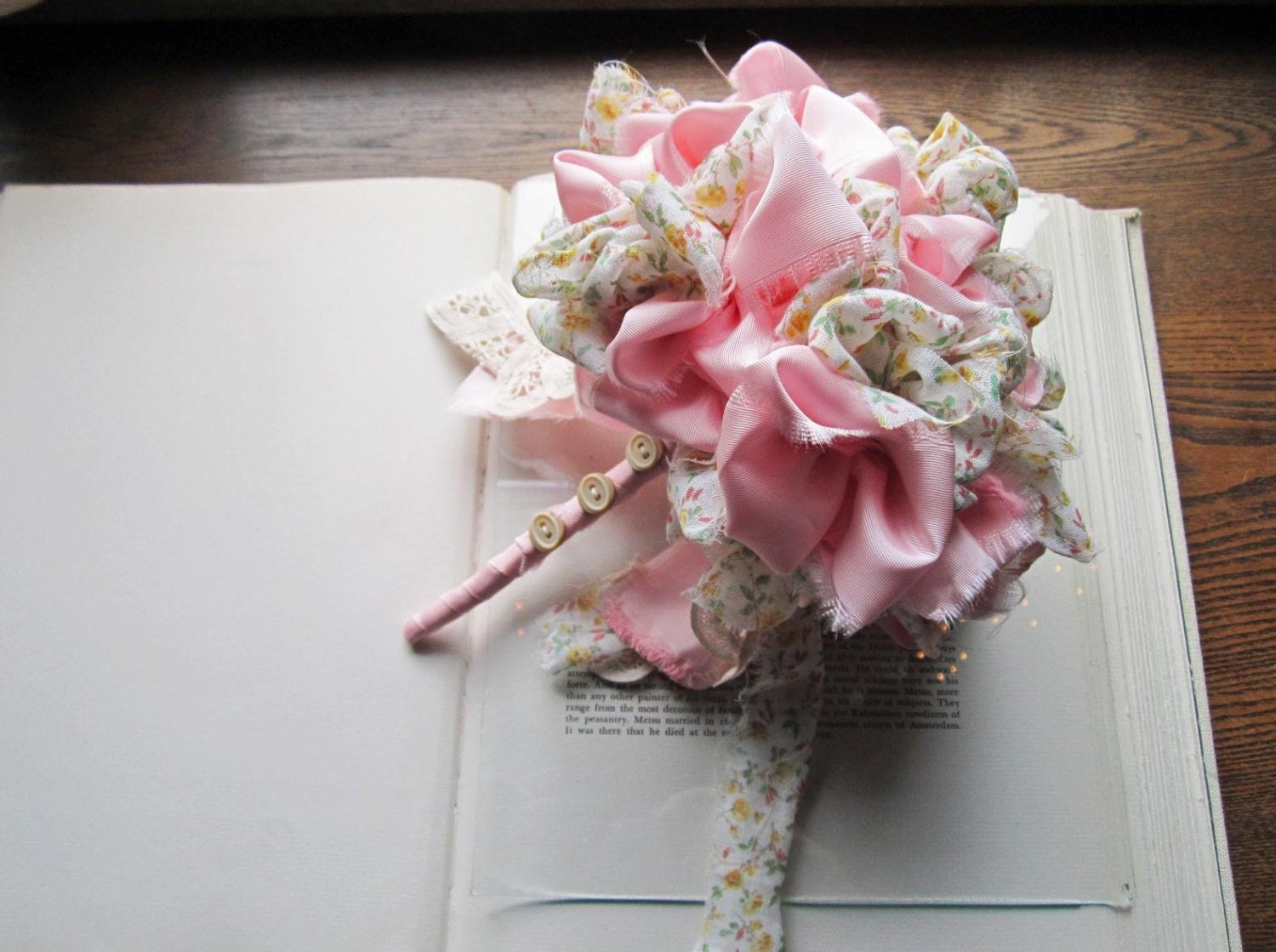 Vintage Fabric Flower Bouquetpink Floral Handmade Weddings Etsy
