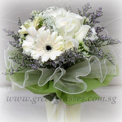 Wb08431d Rom 3 Wh Gerbera 5 Wh Rose Rom Wedding Bouquet