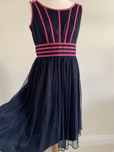 Jacques Vert Navy Blue Pink Ribbon Sleeveless Dress Mesh Party
