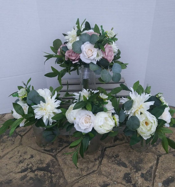 Wedding Flowers Set 8 Pc Lavendermauve Purple Cream Etsy