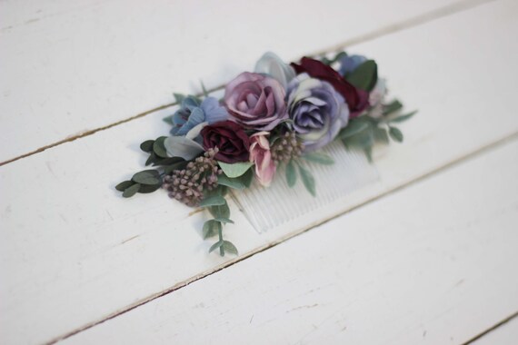 Mauve Lilac Vine Teal Wedding Flower Comb Bridal Headpiece Etsy