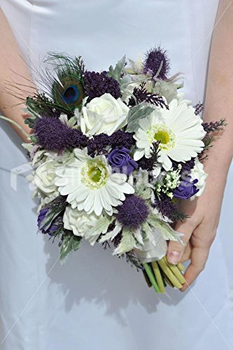 Real Touch White Gerbera Purple Thistle Bridesmaid Bouquet