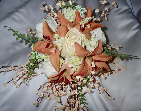 Bride Round Wedding Bouquet And Bout Ivory And Mauve Coral 2 Etsy