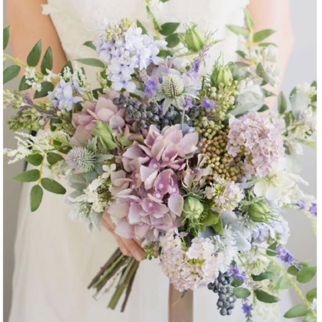 Pastel Rustic Bridal Bouquet In Hydrangeas Thistle And Mathiola
