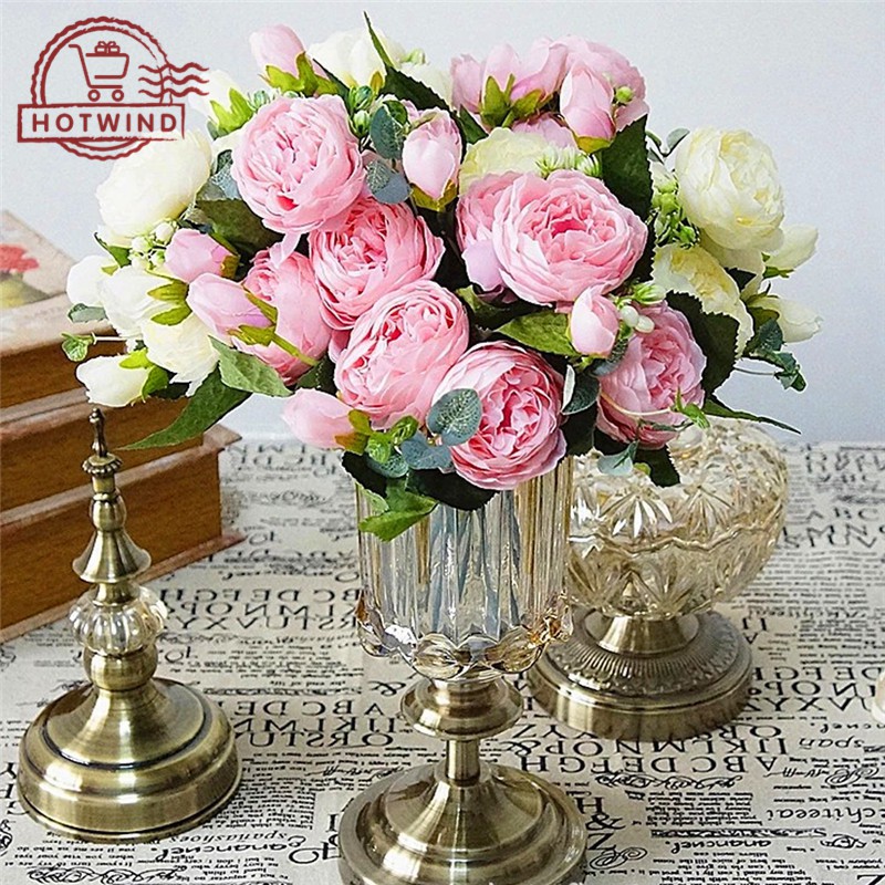 Artificial Silk Fake Flowers Leaf Peony Floral Wedding Bouquet