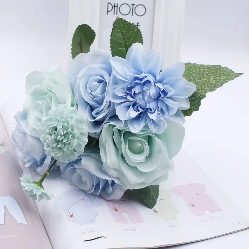 Silk Flower Wedding Bouquet Of Roses Artificial Flowers Dahlias