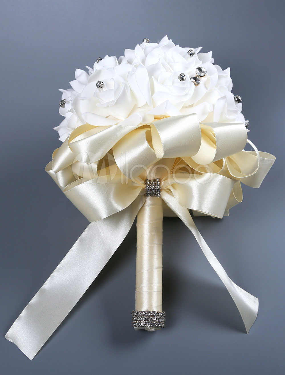 White Wedding Bouquets Flowers Beading Love Rhinestones Bows Silk
