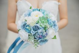 Wedding Bouquet Blush Cream White Light Blue Bridal Etsy