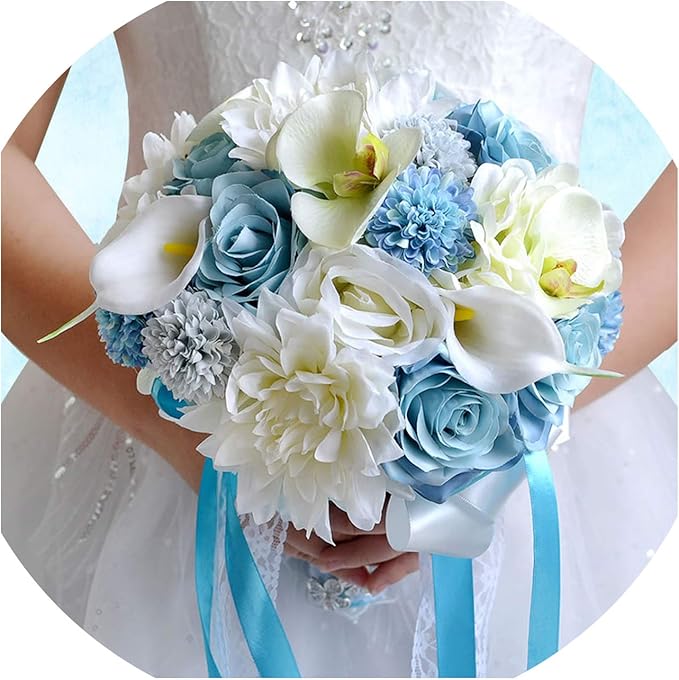 Janevini Western Wedding Bouquet Blue Artificial Bridal Flowers