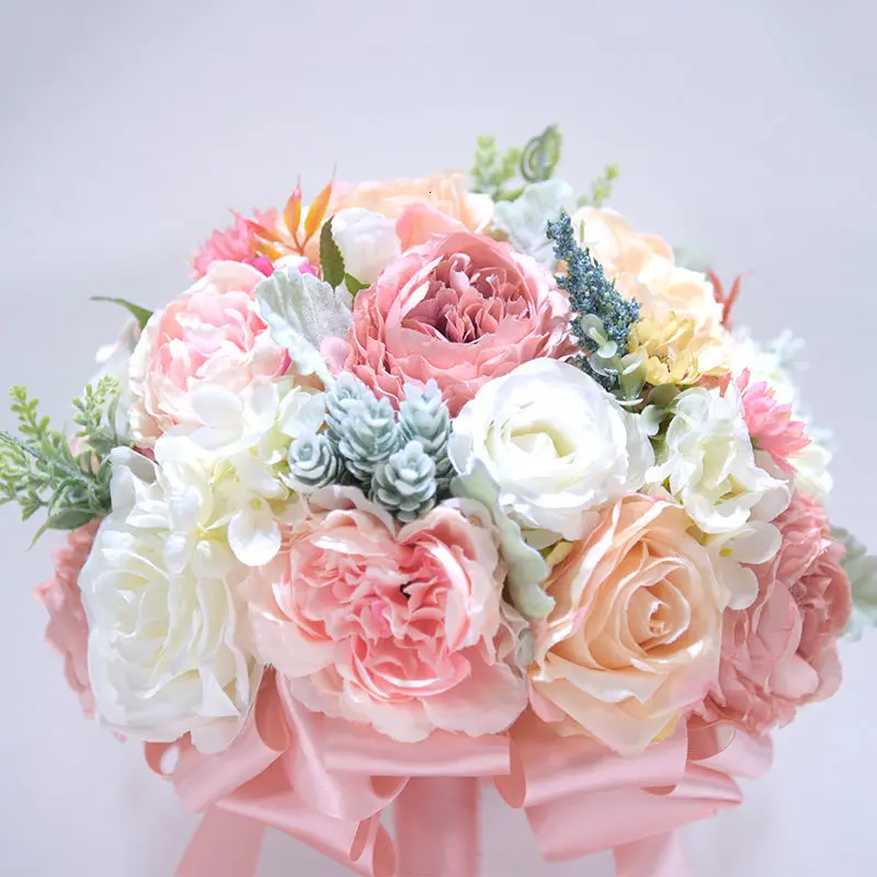 Hot Elegant Pink Hydrangea Champagne Bridal Bouquet Wedding