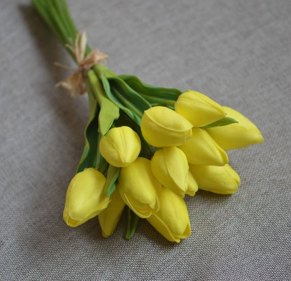 Yellow Tulips Buds Real Touch Flowers For Diy Wedding Bouquets Etsy