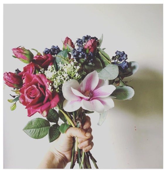 Silk Flower Artificial Wedding Bouquet Roses Magnolias Etsy