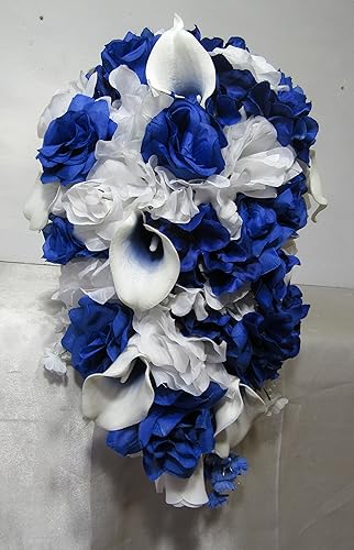 Amazon Com Royal Blue White Rose Calla Lily Cascading Bridal