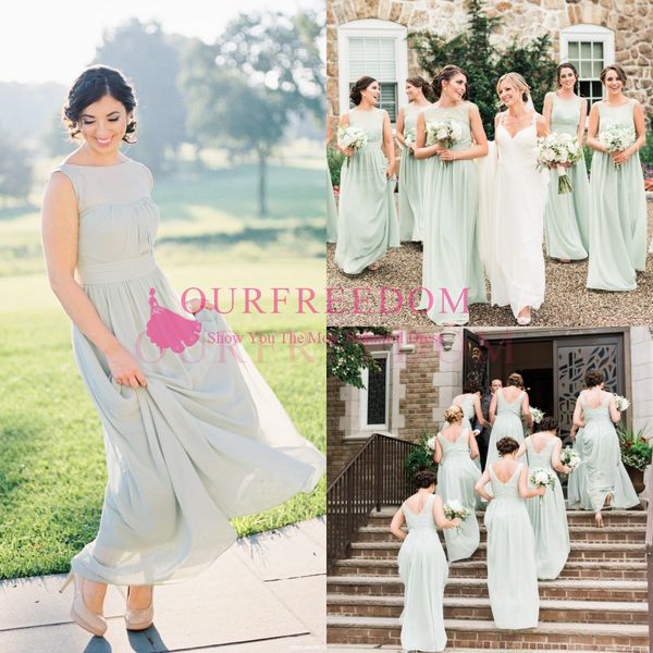2020 Newly Sage Chiffon Floor Length Bridesmaid Dresses A Line