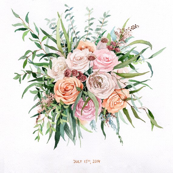 Original Custom Bridal Bouquet Painting In Watercolor Wedding Etsy