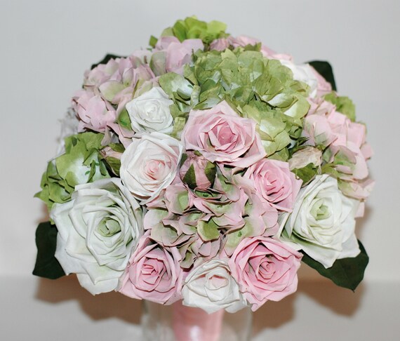 Bridal Bouquet Handmade Paper Rose And Hydrangea Wedding Etsy