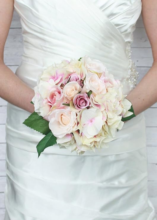 Amazon Com Floral Home Silk Rose And Hydrangea Wedding Bouquet In