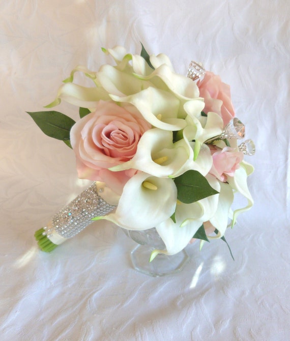 Blush Roses And Calla Lily Wedding Bouquet Etsy