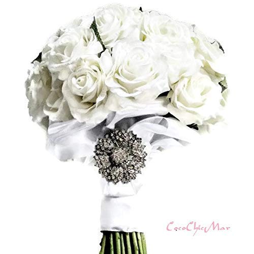 Amazon Com Wedding Bouquet For Bride White Real Touch Roses