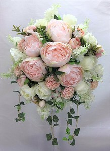 Artificial Silk Flower Light Pink Peonies Cream Roses Wedding