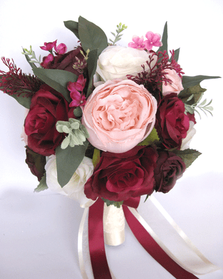 17 Piece Wedding Bouquet Package Bridal Silk Flower Burgundy Pink