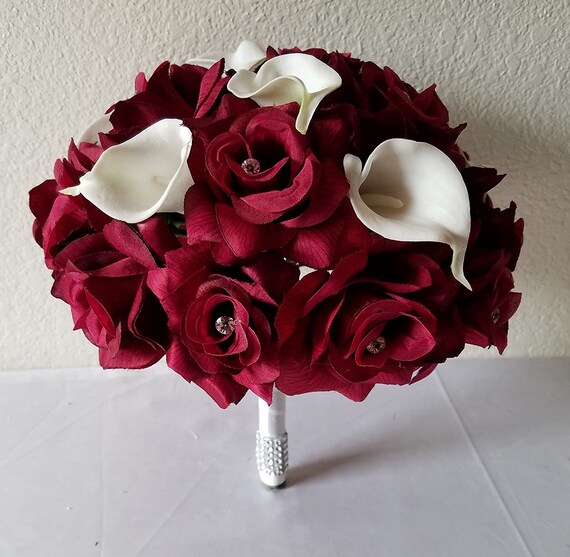 Burgandy Rhinestone Rose Calla Lily Bridal Bouquet Etsy