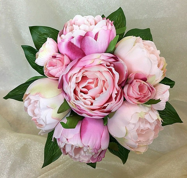 Silk Wedding Bouquet Light Pink Peony Flowers Artificial Posy