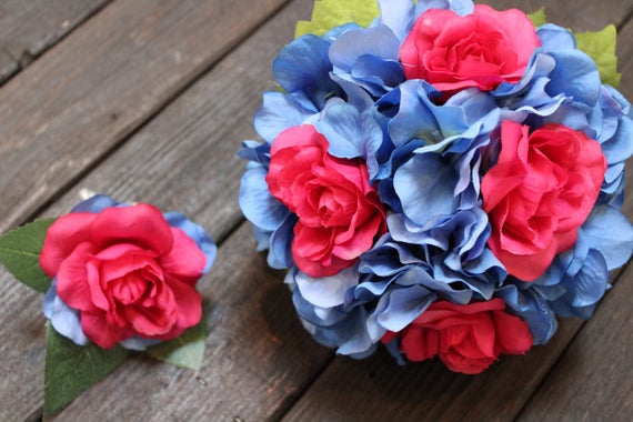 Blue Bridesmaid Bouquet Pink And Blue Bouquet Blue Wedding Etsy