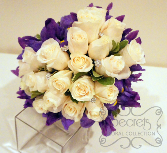 Fresh Cream Roses Purple Iris And Pittosporum Heart Shaped