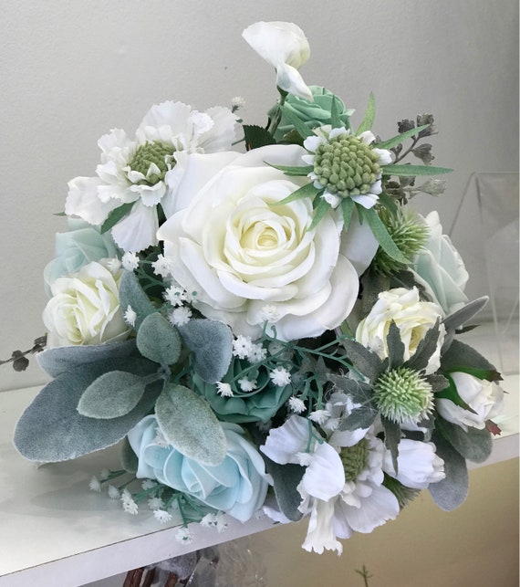 White Rose Thistle Bridal Bouquet Driftwood Flowers