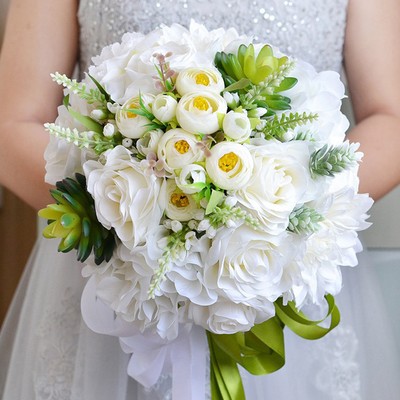 Artificial Roses Succulent Plant Wedding Bridal Bouquet Bride Hand