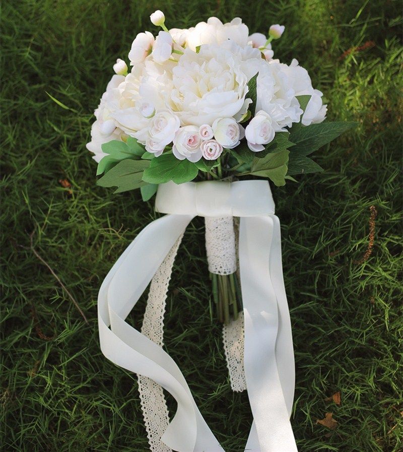 Janevini Vintage White Peony Bridal Bouquet 2018 Artificial