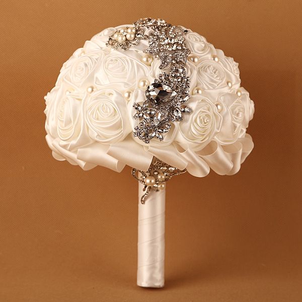 China Crystal Satin Rose Wedding Bouquets Bridal Flower Bouquet