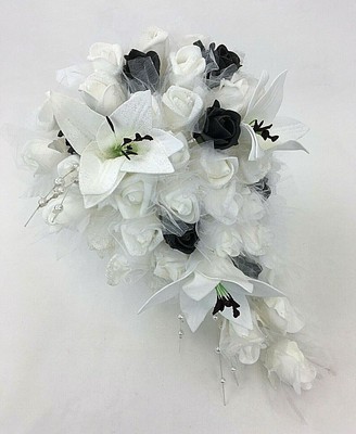 Artificial Flower Foam White Black Rose Lilies Teardrop Wedding