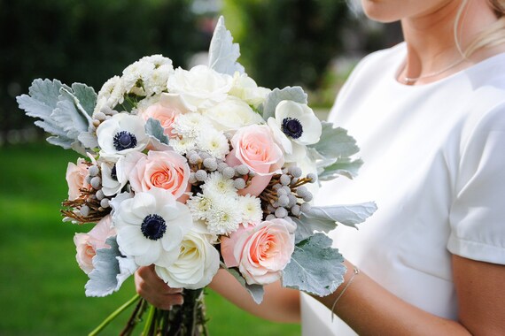 Anemone Wedding Bouquet Blush And Navy Wedding Flowers Etsy