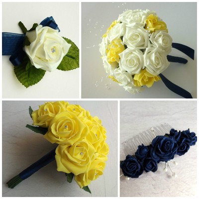 Navy Yellow Rose Wedding Flowers Brides Bouquet Bridesmaid