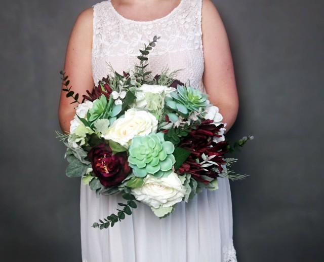 Big Wedding Bouquet Realistic Silk Flowers Burgundy Ivory Green