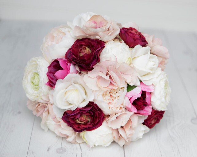 Silk Wedding Bouquets Burgundy Rose Dusty Pink Peony Gum Leaves