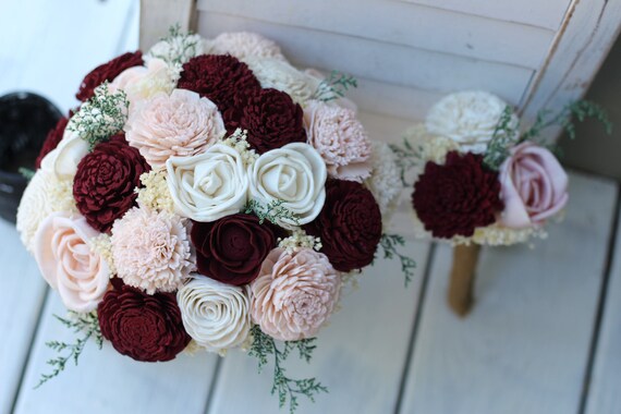 Burgundy Blush Pink Ivory Sola Budget Wedding Bouquet Set Etsy
