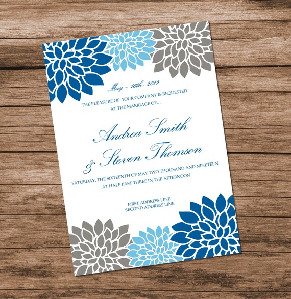Diy Wedding Invitation Template Blue Chrysanthemum Design Etsy