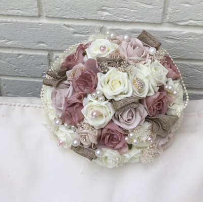 Bridesmaid Bouquet In Vintage Dusky Pink And Ivory Foam Roses