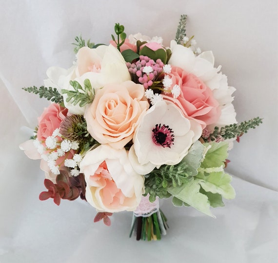 Emily Pink Peach Real Touch Bridal Bouquet Dusky Pink Wedding Etsy