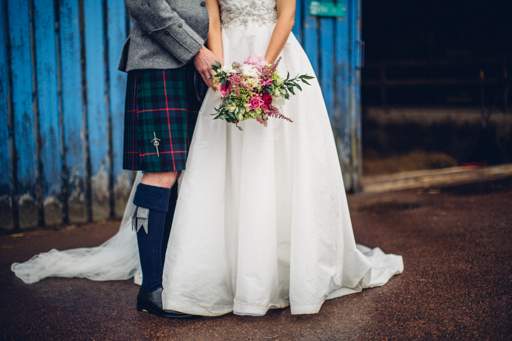 Sassi Holford Mischa Bridal Gown Groom In Kilt Scottish Wedding