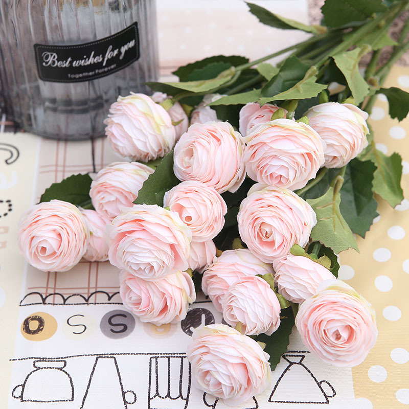 Silk 3 Heads Shallow European Lotus Flower Artificial Tea Rose