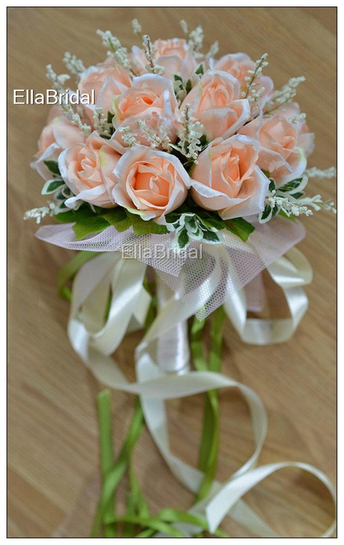Peach Color Fabric Rose Bridal Bouquet Hot Handflower Wedding