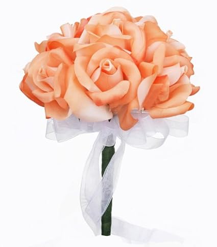 Peach Silk Rose Toss Bouquet Bridal Wedding Bouquet Amazon Co